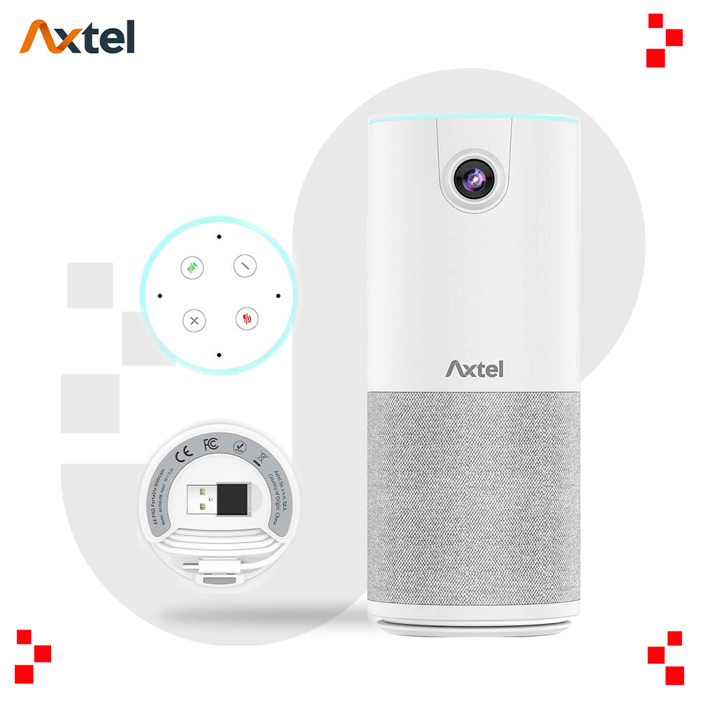 a AX‑FHD‑PW de Axtel es una videocámara portátil todo-en-uno para conferencias, ideal para transformar cualquier espacio en una sala de reuniones inteligente. Con resolución Full HD 1080p y un ángulo de visión de 96°, ofrece imágenes nítidas y amplias (aspecto 16:9), perfectas para equipos pequeños, presentaciones o enseñanza remota.